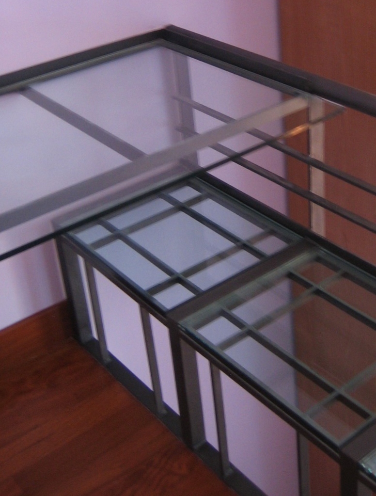 Particolare della seduta in metallo e cristallo per accentuare la trasparenza e la visibilità